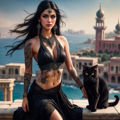 The year was 1000 BCE, in the heart of Ancient Egypt. Lora, a beautiful and intelligent creature, was born to a revered high priest, a man privy to Egypt's deepest mysteries. He sensed in Lora a spirit like none he had seen before and so, over time entrusted her with the temple’s secrets and guided her through the teachings of architecture, finance, astrology, and the very essence of life and death—the realms in which the feline spirit, in its infinite curiosity, prowled freely. From a young age, Lora became skilled in reading the stars and interpreting omens, honing her talents under the watchful eye of her mother and the high priests. Her renown grew as she read the fates of kings and consulted on the grand designs of tombs and temples.